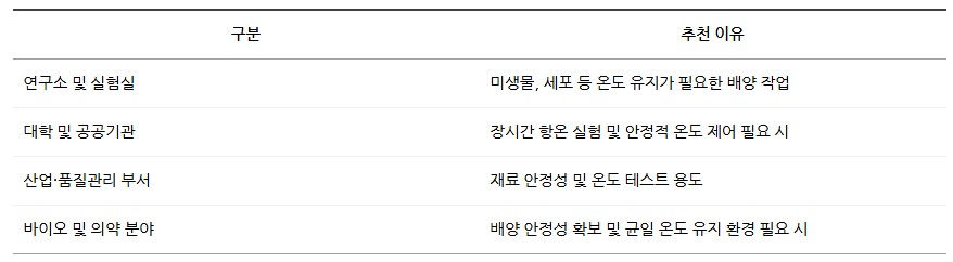 자연대류(Natural) 방식으로 균일한 온도 분포를 유지하며, 실험실·연구소 등 다양한 환경에서 안정적인 배양 작업이 가능합니다.