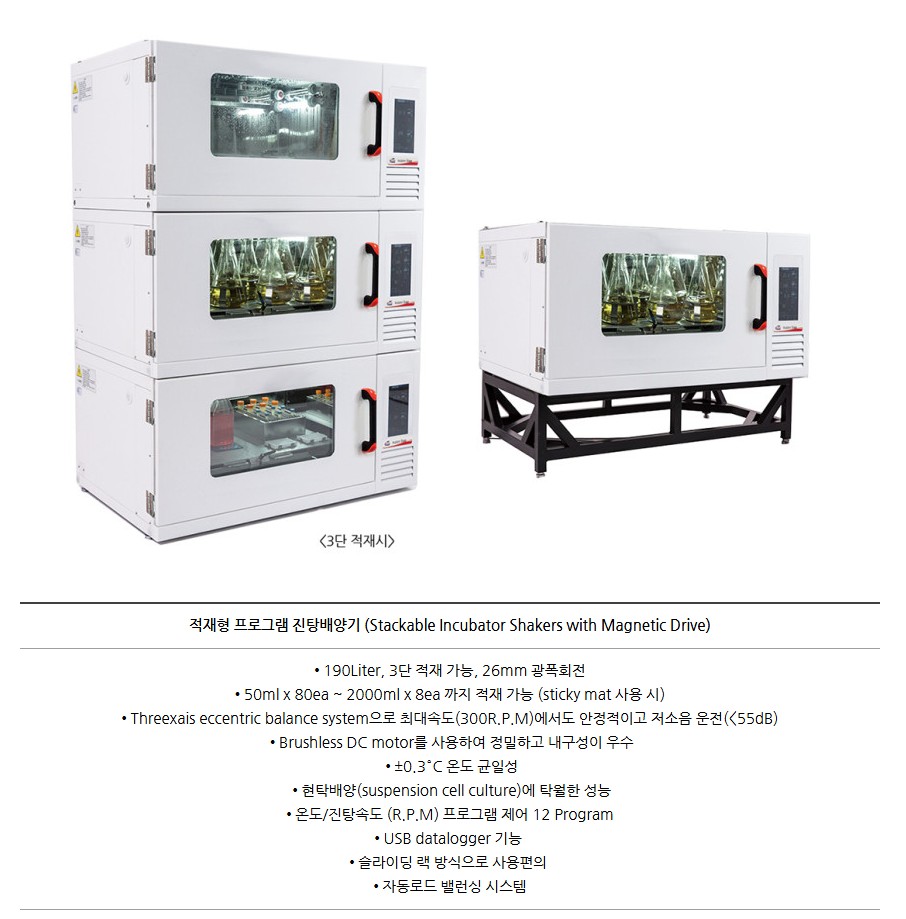 IS-AX 모델은 Brushless DC 모터와 자기구동 시스템을 적용한 고정밀 적재형 프로그램 진탕배양기입니다.