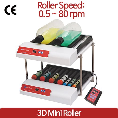 Mini Roller는 다양한 크기의 플라스크, 튜브, 병을 수용할 수 있도록 설계된 가변 속도형 롤러 장치입니다.