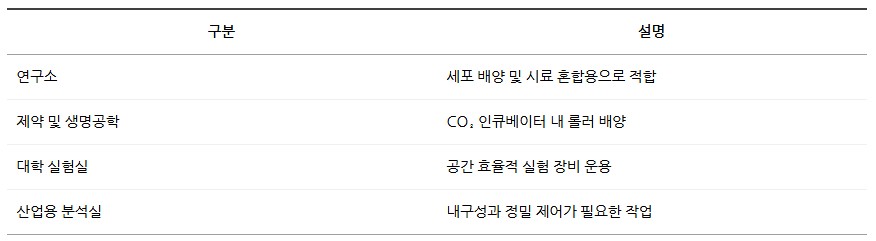 품명 가변 속도와 스택형 구조를 갖춘 Mini Roller, 5~60℃ 환경에서 안정적으로 작동하며 CO₂ 인큐베이터용으로 적합한 실험실 롤러 믹서.
