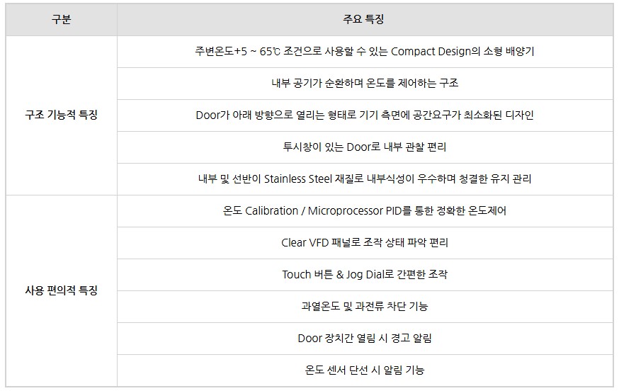 실험실, 연구소 등 다양한 분야에서 사용하기 적합한 고성능 소형 배양기입니다.