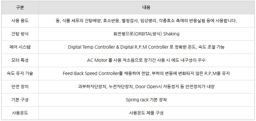 회전형(Orbital 방식)의 정밀한 셀 진탕 배양 기능과 함께