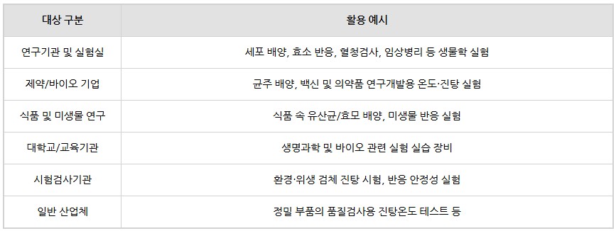세포 배양, 효소반응, 혈액 검사, 임상시험 등 다용도로 활용 가능한