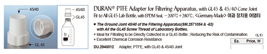 DURAN® PTFE Adapter for Filtering Apparatus, with GL45 & 45/40 Cone Joint