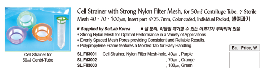 Mesh 40·70·100㎛, Insert part Φ25.7mm, Color-coded, Individual Packed, 셀여과기