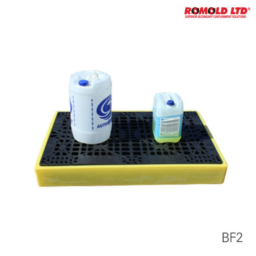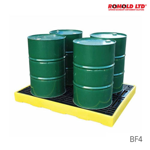 품명 PE 조립 연결형 팔레트 - Romold ▶ 작업장 규모에 알맞게 설치 가능 ▶ 3가지 타입(BF2. BF4, BF4S) ▶ BF2 : 100리터 드럼 최대 4개 적재 BF4 & BF4S : 205리터 드럼 최대 4개 적재 ▶ 연결 시, 고정 클립으로 서로를 고정 ▶ 커넥터(BFC)르르 사용하여 유해물 역류 방지 팔레트 사이를 연결하여 유해물이 한 곳에만 집중적으로 차는 것을 방지 외부로 유해물 배출시 ▶ Applications : 모