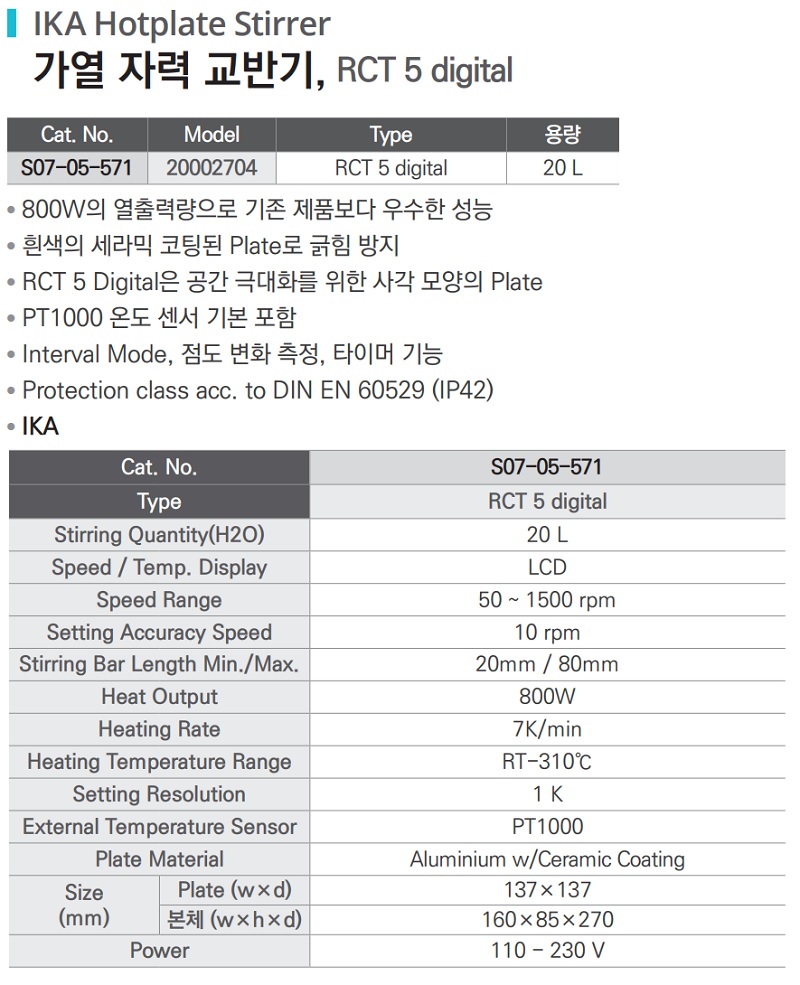 | Stirring Quantity (H2O) | 20 L |
