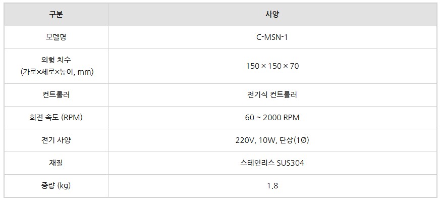 품명 소형 자석 교반기 C-MSN-1, 전기식 속도 조절 / SUS304 스테인리스 바디로 실험실용 교반에 최적