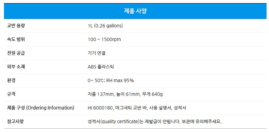 마그네틱 교반기 실험용 소형 자력 교반기 HI6000 전용 미니 스터러 HI6000180