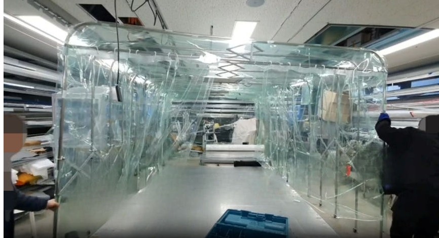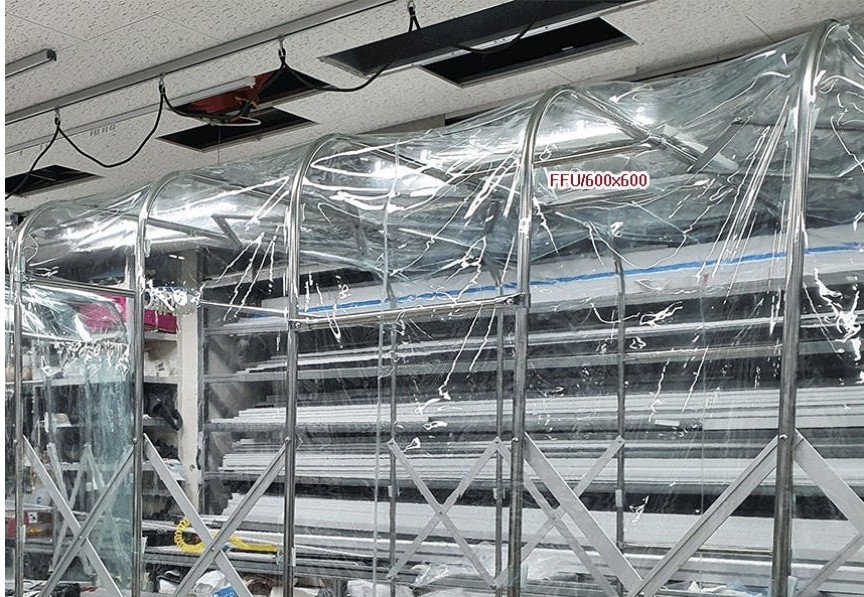 [주문 제작 가능] 자바라형 크린 부스 클린룸 0.3T 무정전 투명 비닐 FFU 헤파 필터 1900×3400x 2600㎜