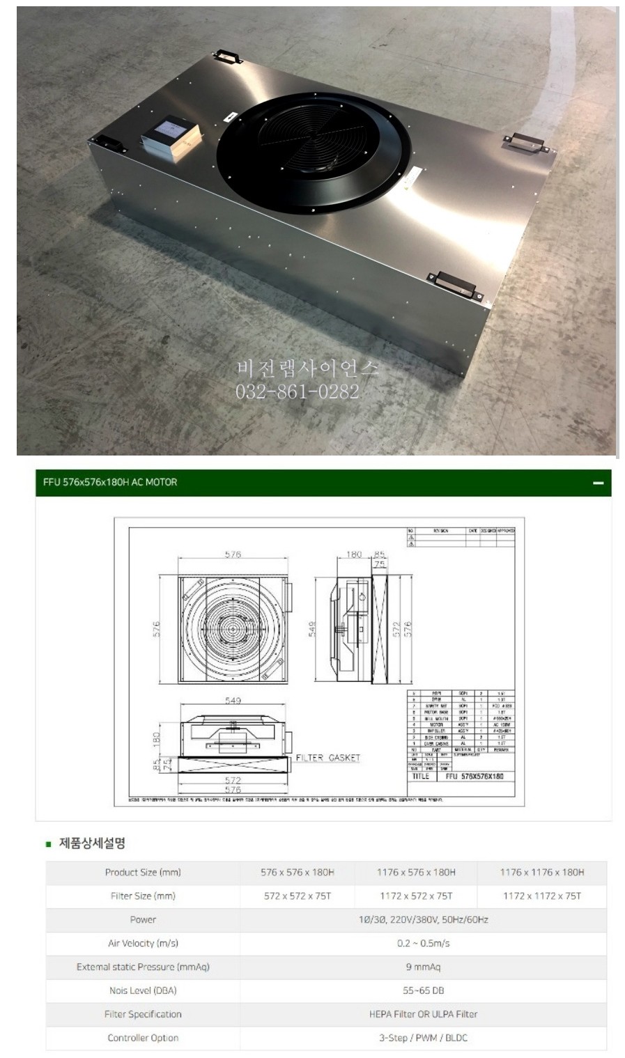 내부에 고성능 HEPA 필터 탑재형 FFU (Fan Filter Unit) 가 장착되어 있어