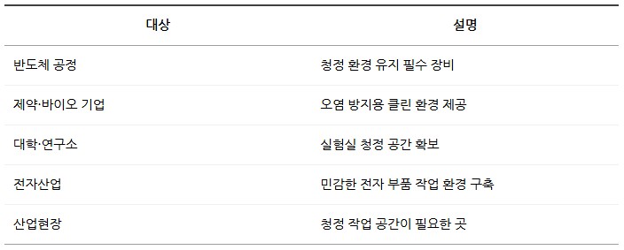 크린부스는 청정 환경이 필요한 실험실, 반도체, 제약, 전자산업 등에 적합한 장비입니다.