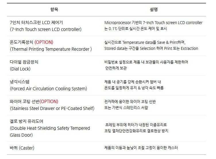 온도 이탈·도어 오픈 등 이상 발생 시 알람 기능이 작동하여 안전성을 높였습니다.
