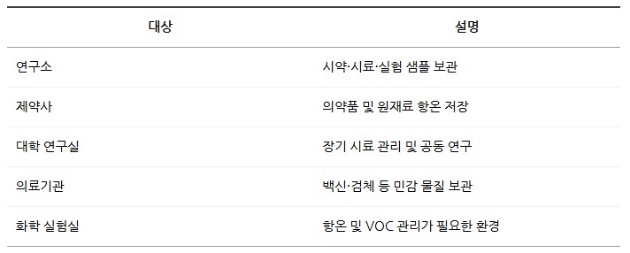 내부는 620L 용량과 5단 선반으로 설계되어 시약, 샘플, 의약품 등을 효율적으로 보관할 수 있습니다.