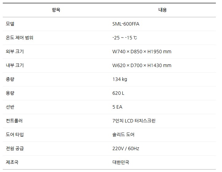 냉동필터시약장 SML-600FFA 모델은 -25℃에서 -15℃까지 안정적으로 온도를 유지하며,