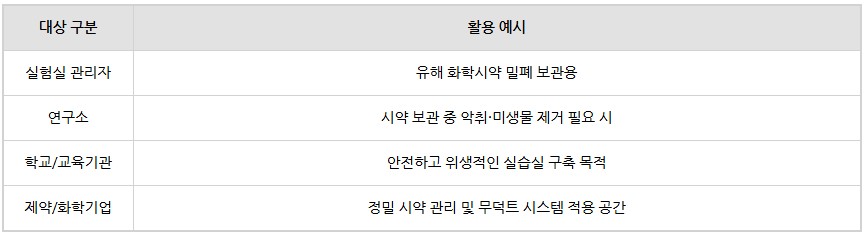 시약장 내부에 공기가 자체 순환하여 여과되는 방식으로 실내 온도에 영향을 주지 않음
