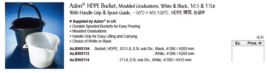 품명 버킷 HDPE 눈금부 10.5 & 17Lit 블랙/화이트