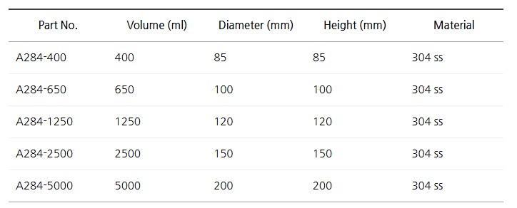 0.4L부터 5L까지 다양한 용량으로 제공되어, 실험실·생산라인 등 다양한 환경에 적합합니다.