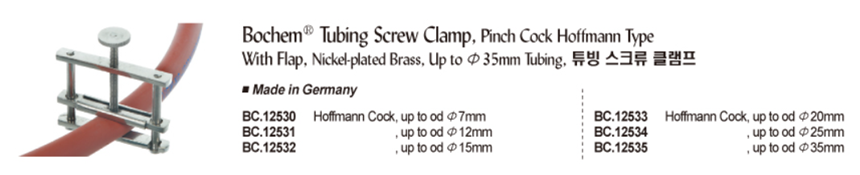 Bochem® Tubing Screw Clamp, Pinch Cock Hoffmann TypeWith Flap, Nickel-plated Brass, Up to Φ35mm Tubing, 튜빙 스크류 클 램프