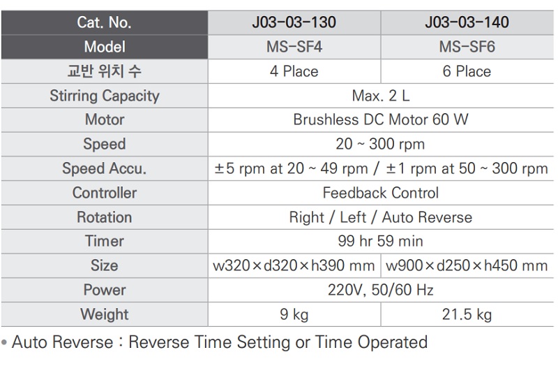 | Cat. No. | Model | 용량 | 교반 수 |