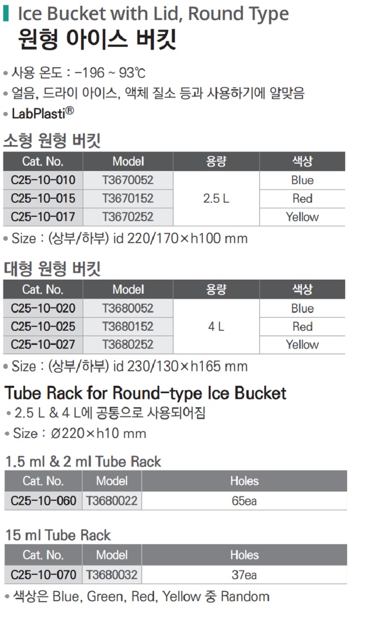 품명 ■ 사용 온도 : -196 ~ 93℃ ■ 얼음, 드라이 아이스, 액체 질소 등과 사용하기에 알맞음 ■ LabPlasti®