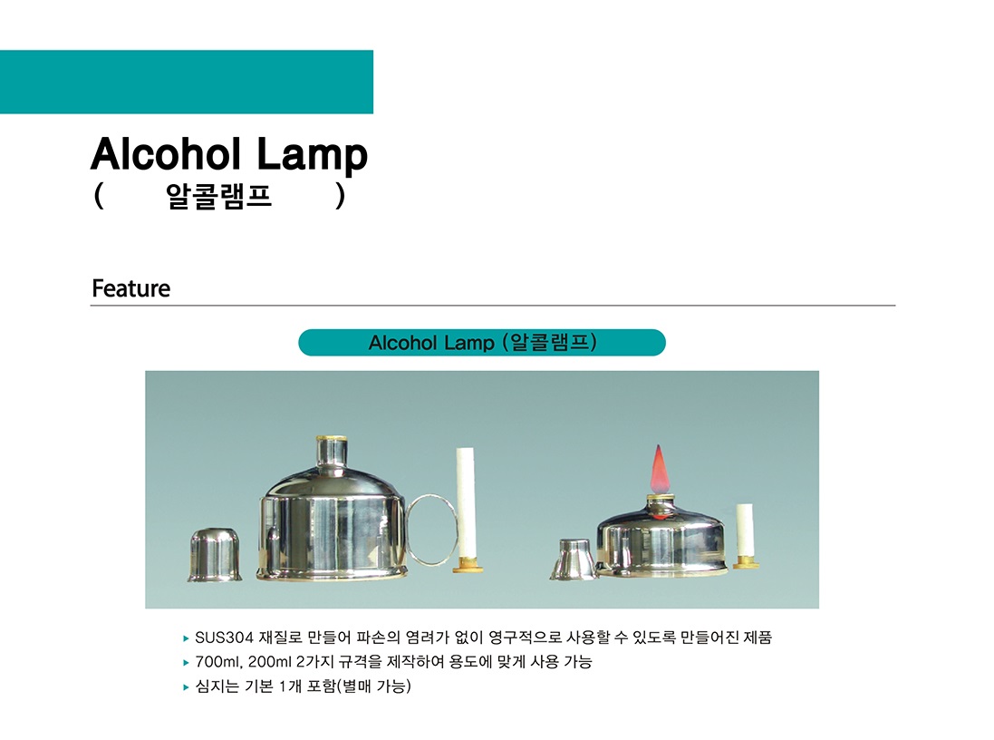 품명 - 실험실에서 일반적으로 쓰이는 알콜 램프 - All sus 304 재질 - 심지는 별매가능