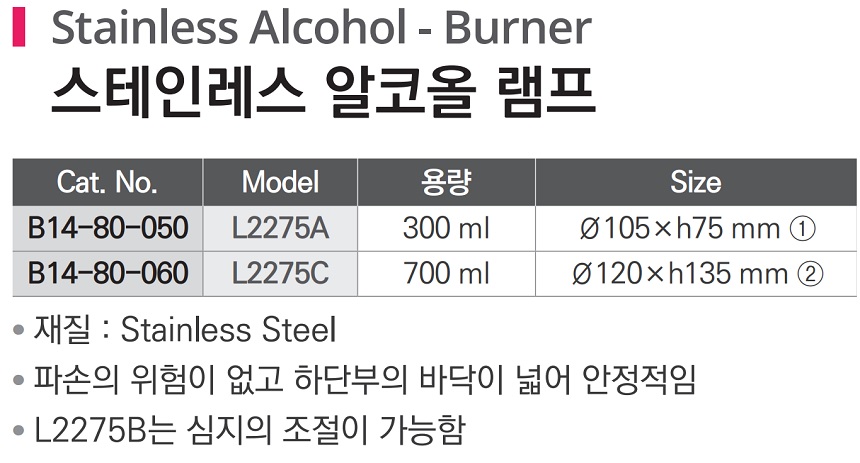 스테인레스 알코올 램프 Stainless Alcohol - Burner B14-80-050