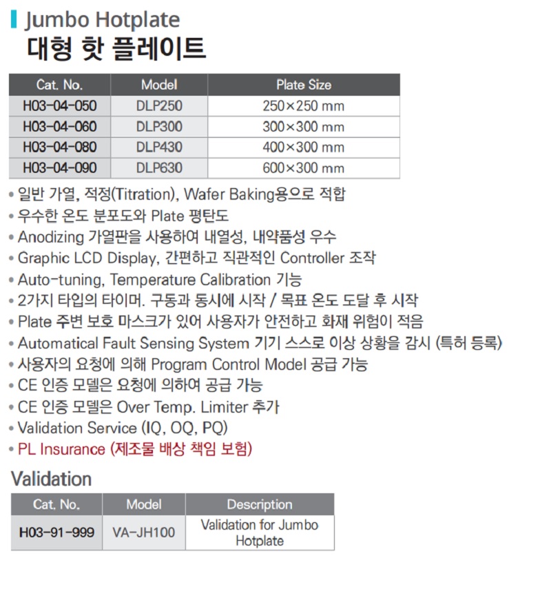Validation for Jumbo Hotplate| Cat. No. | Model | Plate Size |