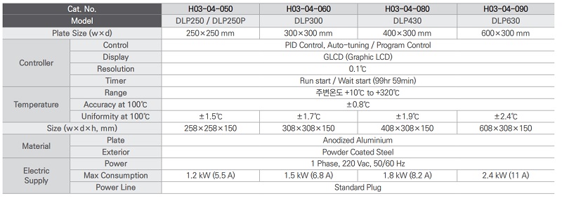 | Model | DLP250 | DLP300 | DLP430 | DLP630 |