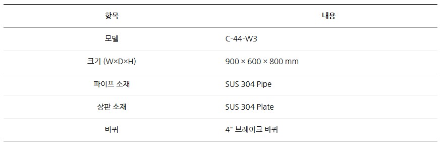 스테인리스 작업대 이동식 카트 실험실용 워크테이블 C-44-W3