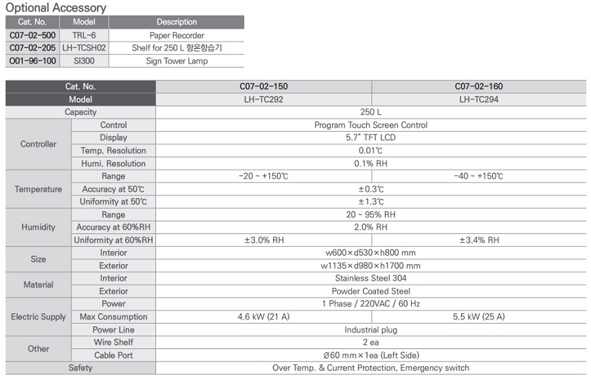 | C07-02-150 | LH-TC292 | 250 L | -20℃ ~ 150℃ |