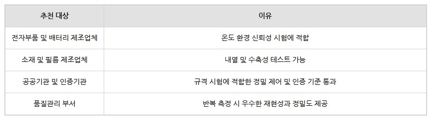 고급형 PID 터치 컨트롤러, 다양한 옵션 포트, 뛰어난 냉·가열 속도 등 시험 환경에 최적화된 성능을 제공합니다.