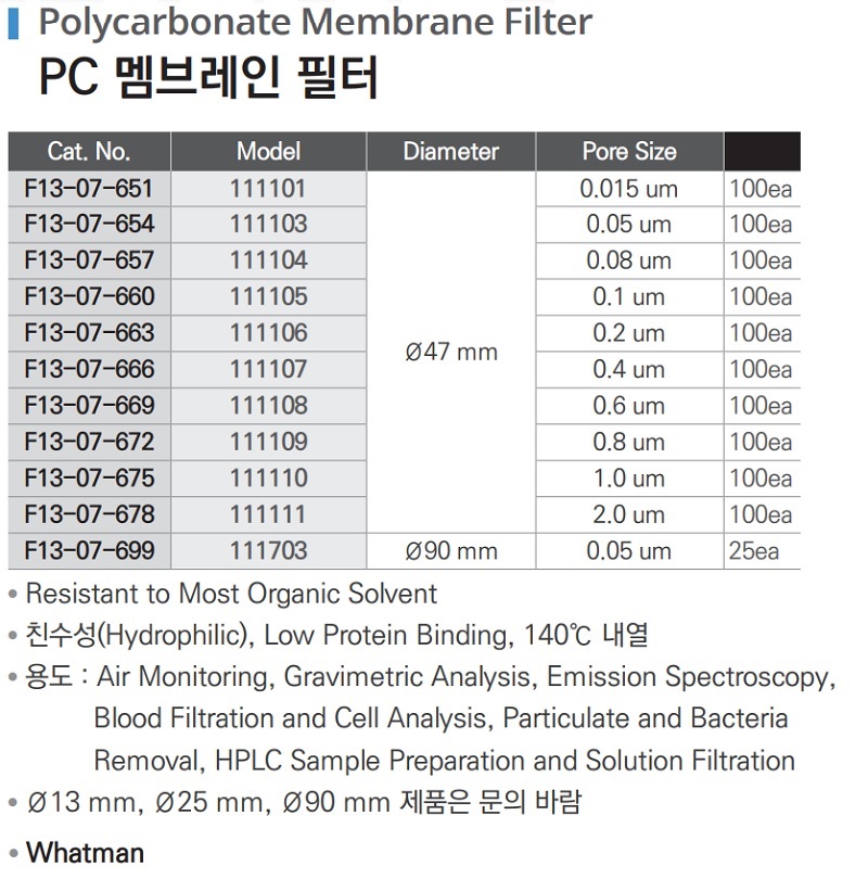 PC 멤브레인 필터 Polycarbonate Membrane Filter