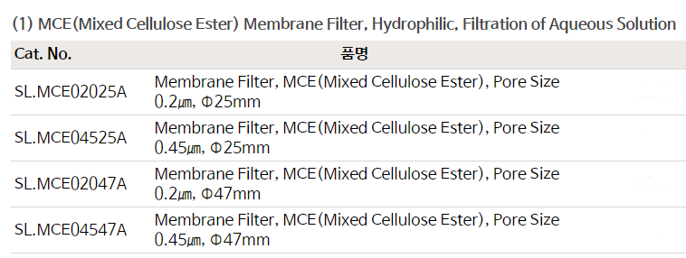 품명 멤브레인 필터 MCE Membrane Filter