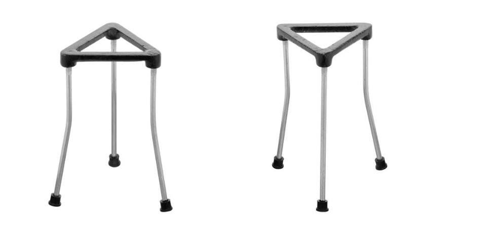 품명 주철 상단과 스틸 다리로 제작된 삼발이 스탠드. 내구성과 안정성이 뛰어나며 화학 실험에서 비커나 플라스크를 지지하는 용도로 사용.