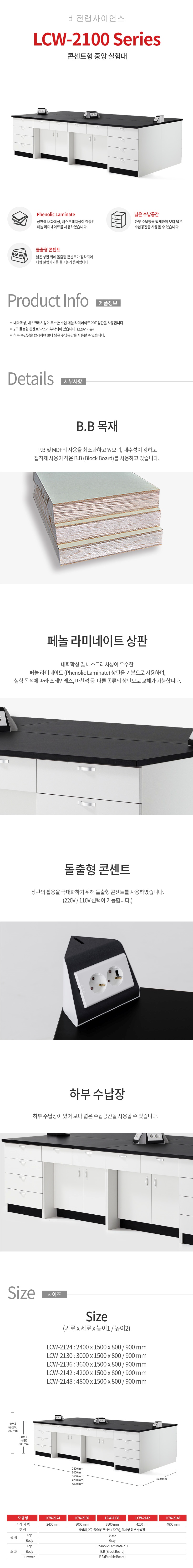 목재 재질 콘센트형 중앙실험대 LCW-2124