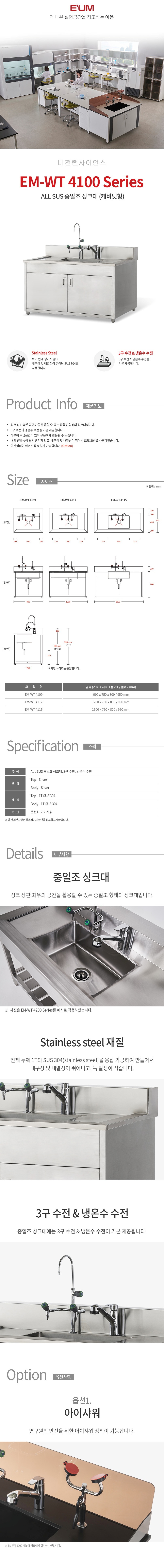 ALL 스테인리스 스틸 재질 중일조 싱크대 (캐비닛형) EM-WT 4109