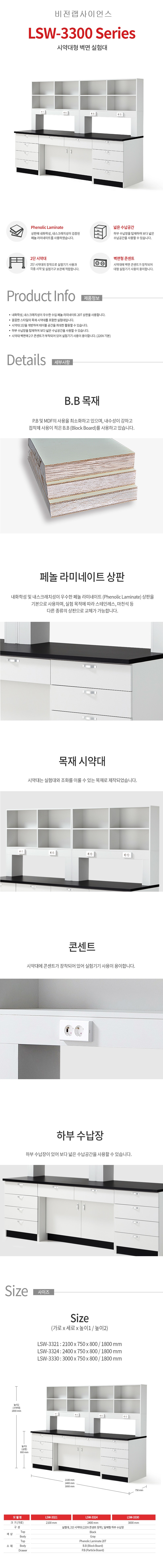목재 재질 시약대형 벽면 실험대 (중앙 수납 타입) LSW-3321