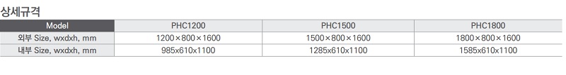 | H02-293-241 | PHC1200 | 1200×800×1600 mm |