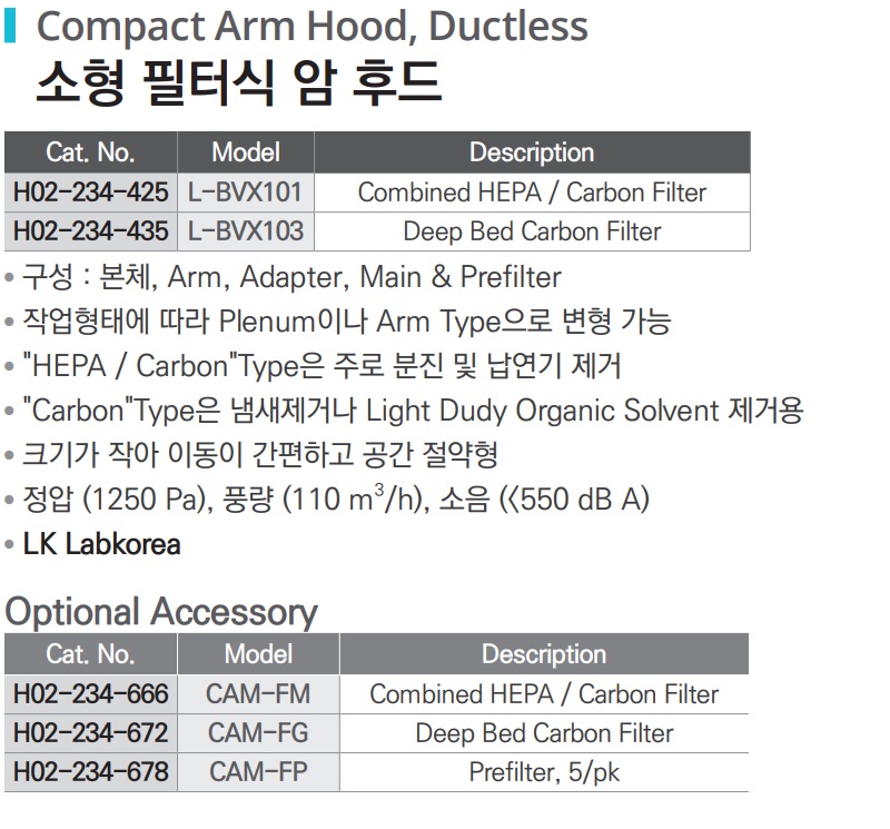 소형 필터식 암 후드 Compact Arm Hood, Ductless