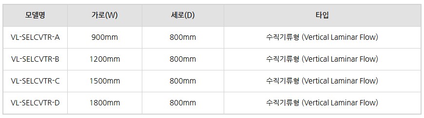 수직기류 무균 작업대 HEPA 필터 장착 라미나 플로우 클린벤치 VL-SELCVTR 시리즈