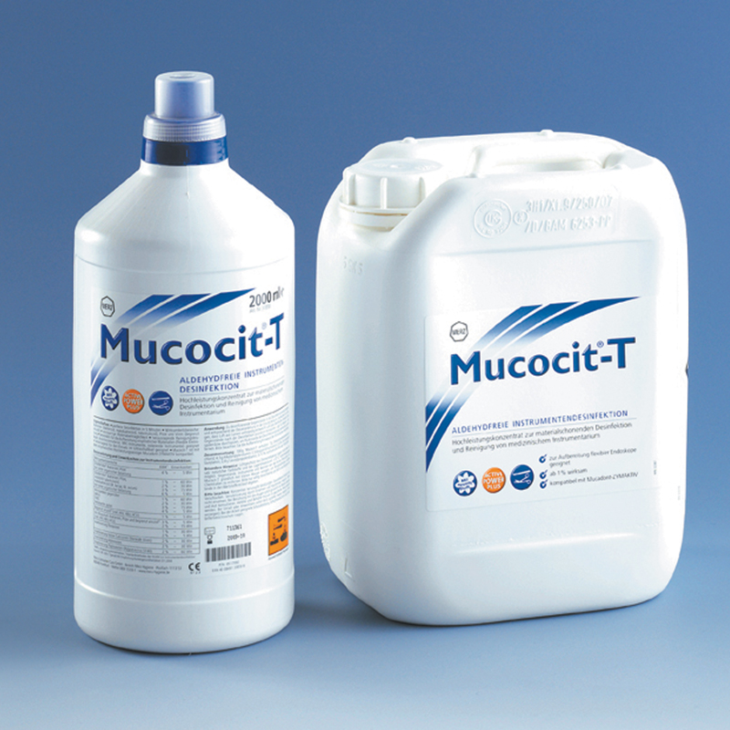 | Ingredient | 100 g Mucocit® -T Contain : 7 g Didecyldimethylammoniumchloride, 4.5 g Alkylpropylenediamino-1, 5-bisguanidiniumacetate, 2 g Bis(-Aminopropyl)-Laurylamine, 2.8 g Laurylpropylenediamine, 5 ~ 15% Non-ionic Surfactants, Auxiliary Agents |