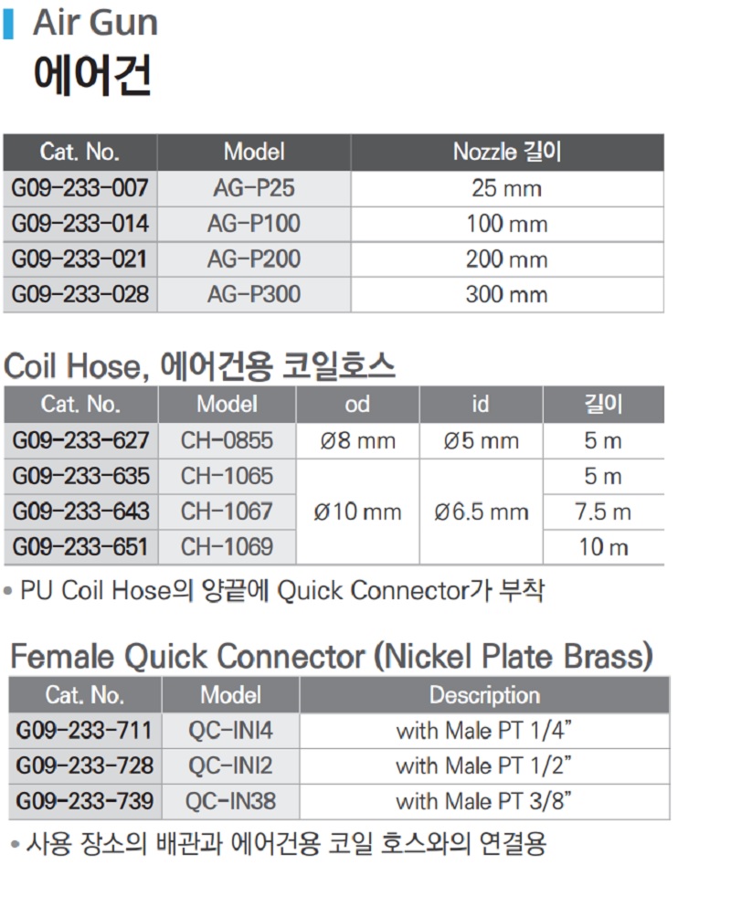 • ● PU Coil Hose의 양끝에 Quick Connector가 부착 되어져 있음