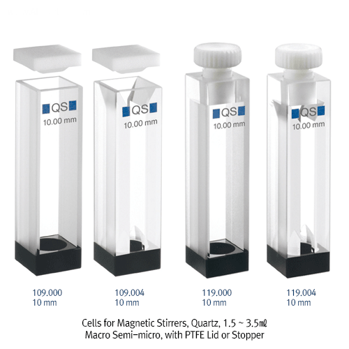 Cells for Magnetic Stirrers, Quartz, 1.5 ~ 3.5㎖Macro Semi-micro, with PTFE Lid or Stopper
