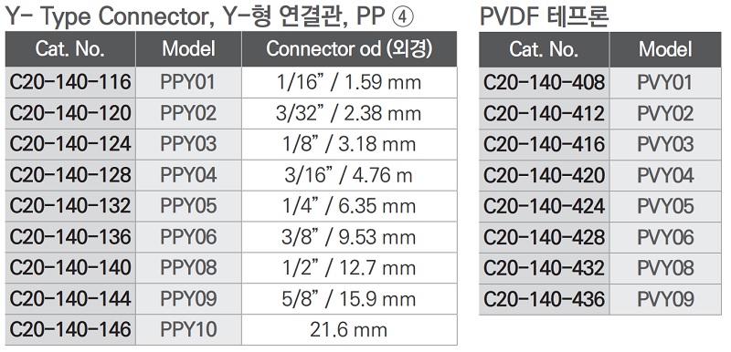 Y- Type Connector, Y-형 연결관, PP ④PVDF 테프론