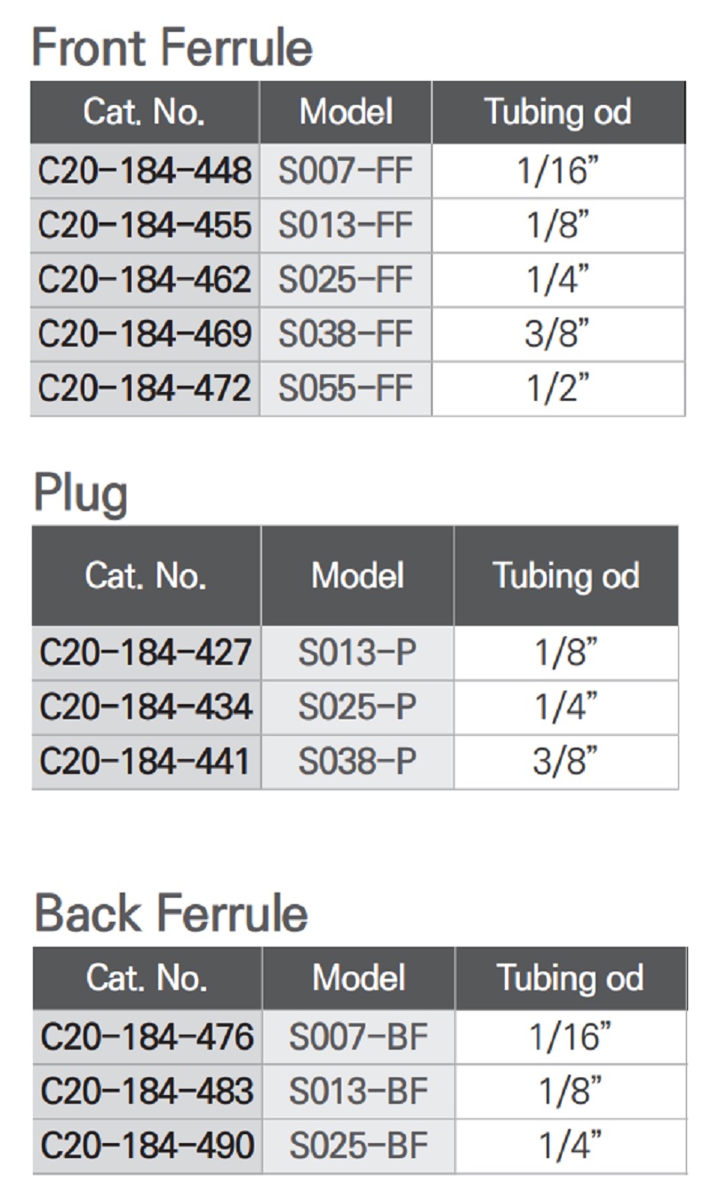Front Ferrule| Cat. No | Model | Tubing O.D. |