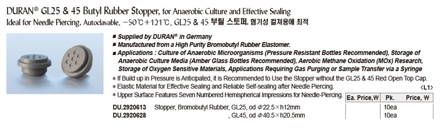 품명 부틸 스토퍼, 혐기성 컬쳐용에 최적 GL25 & 45