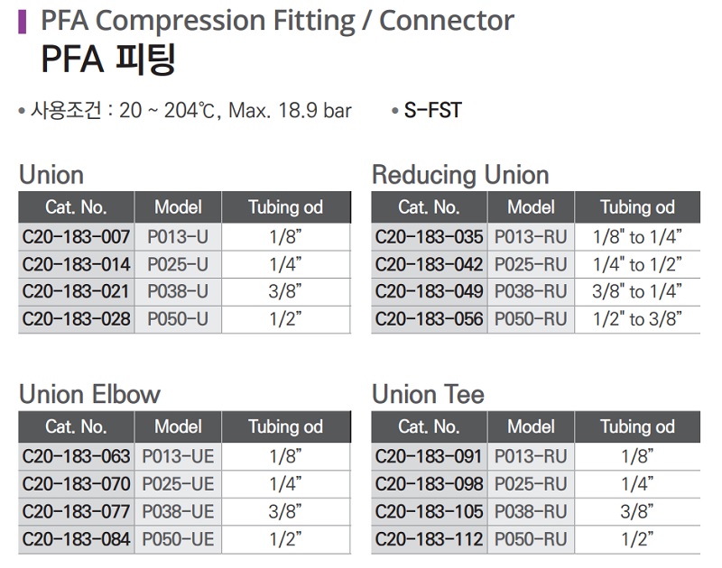 PFA 피팅 PFA Compression Fitting / Connector