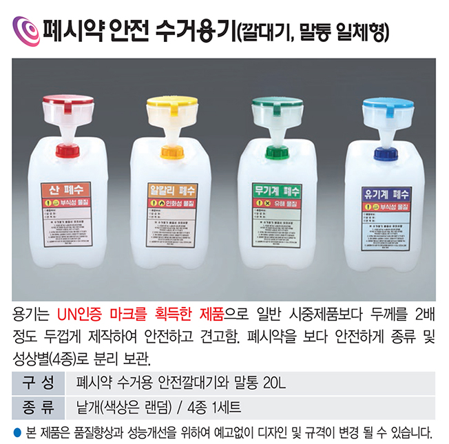 폐시약 안전 수거용기 일체형 깔때기 + 말통 VLS-4761 폐수통 폐시약보관