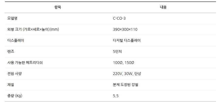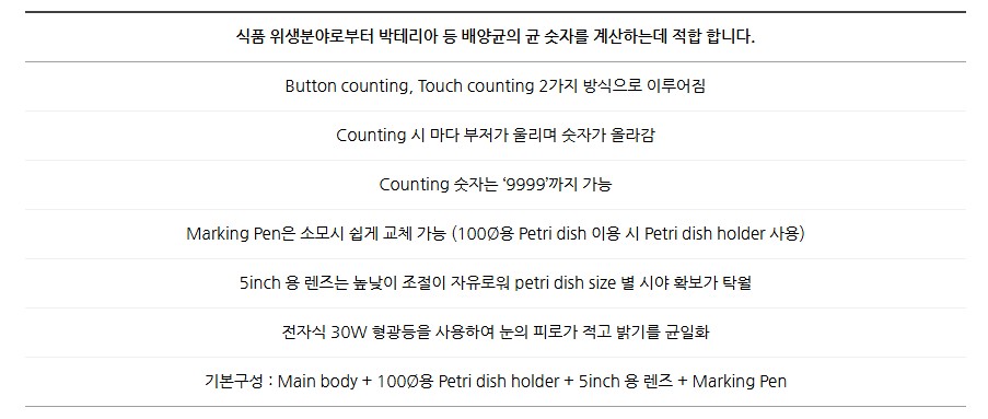 품명 5인치 렌즈 탑재, 디지털 표시 기능으로 편리한 세균 계수기 C-CO-3. 버튼/터치 방식, 220V 실험실 필수 장비.